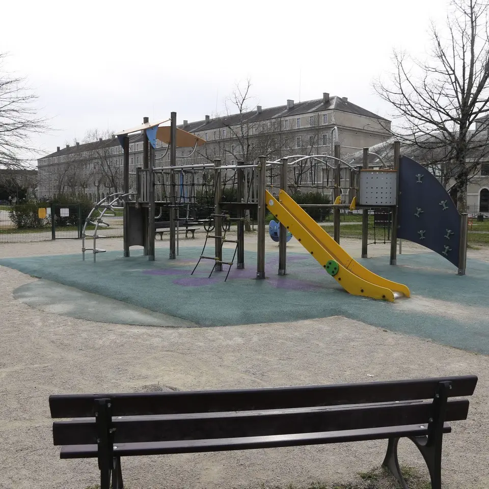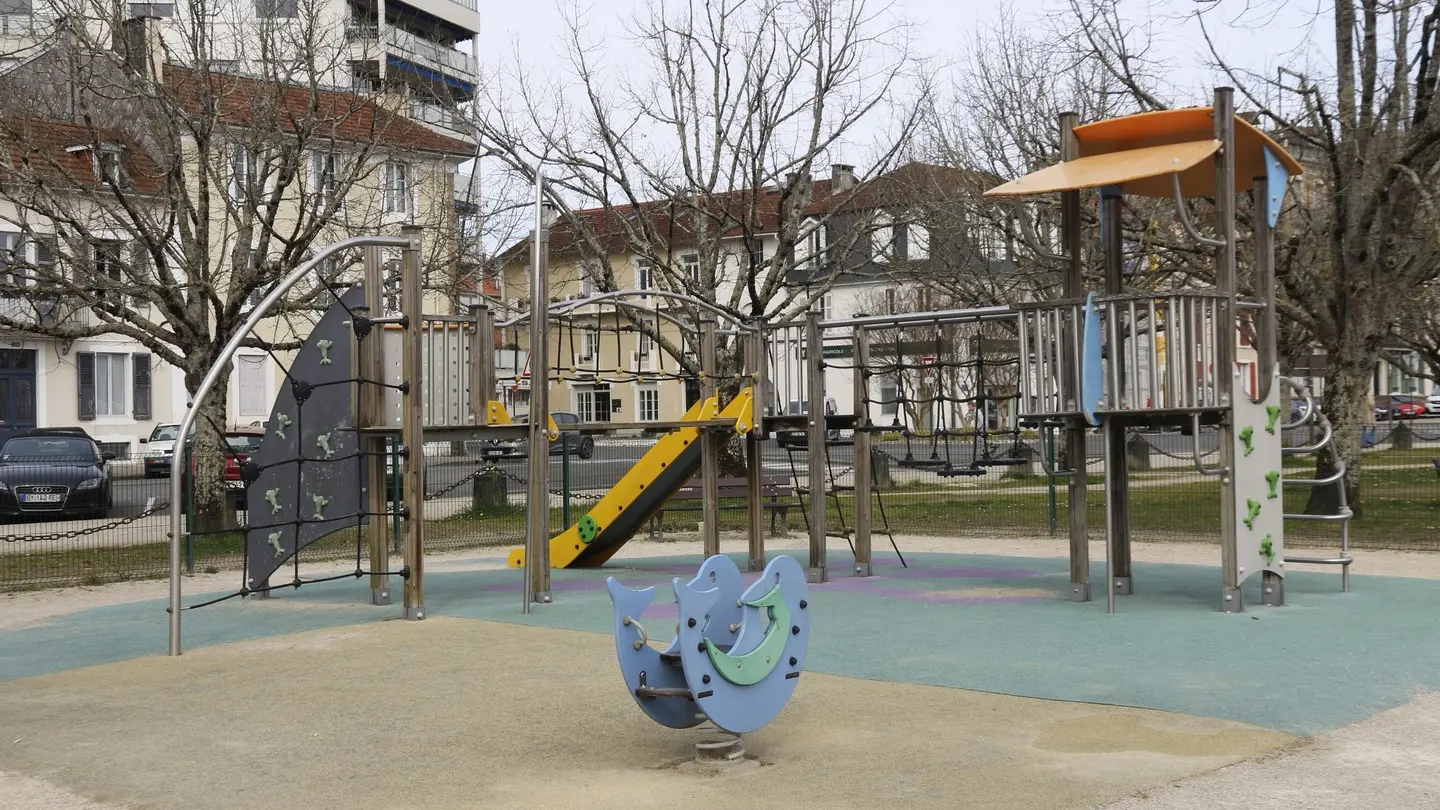 This playground is located five minutes' walk from the historic center, at the end of a large square and the cheapest parking lot in Pau.