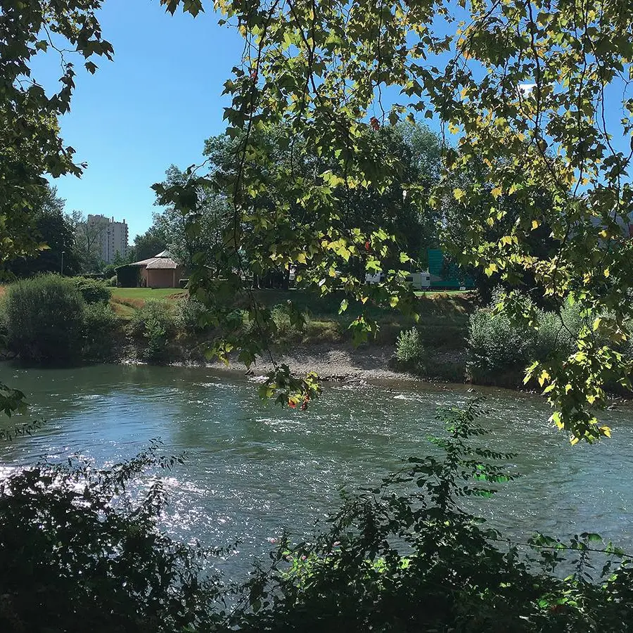 It is on the other side of the Gave, in the grass, at the start of a sports course. You will be in a small wood, on the edge of the Gave in a very pleasant, bucolic, natural site while being 200m from the road that leads to Pau or in the valleys of Ossau and Aspe.