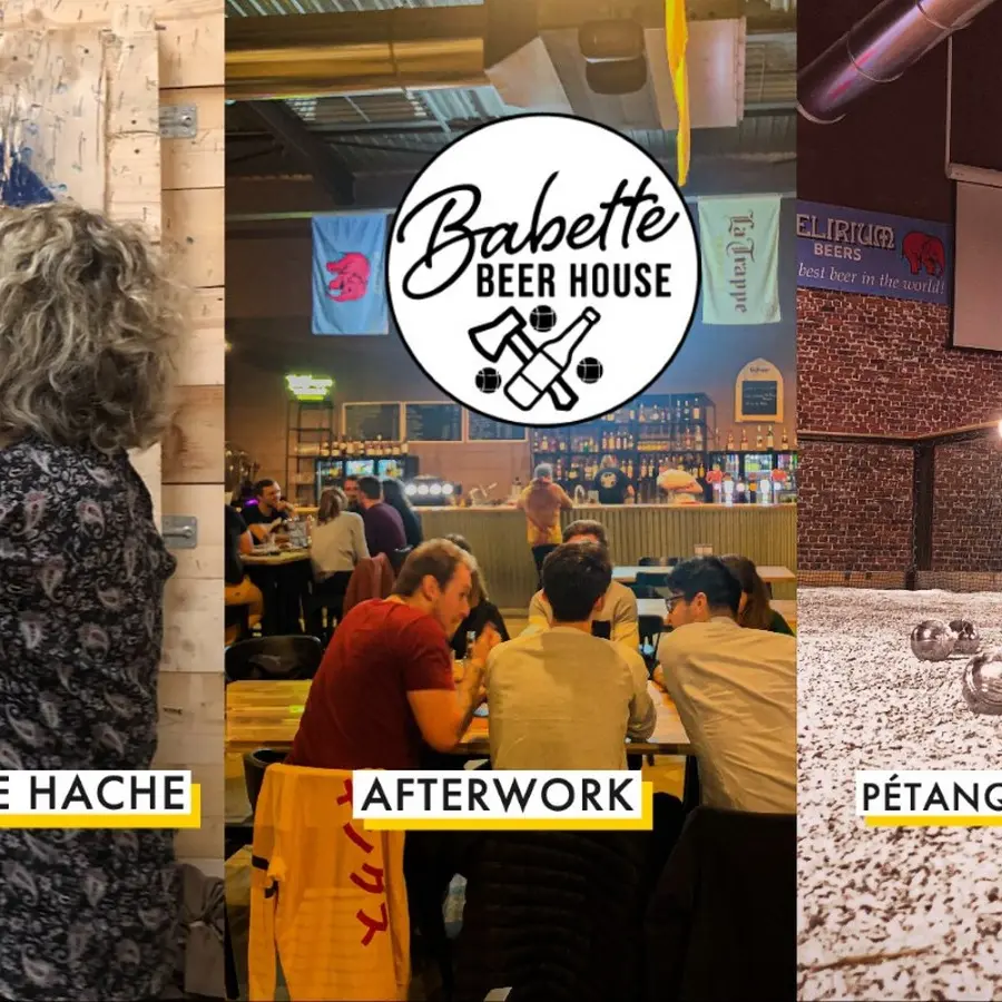 Have fun with our original axe-throwing activities, indoor petanque, electronic darts, table soccer and beerpong tables. La maison de Babette also has a giant screen and a Parions Sport sales outlet run by La Française des Jeux.