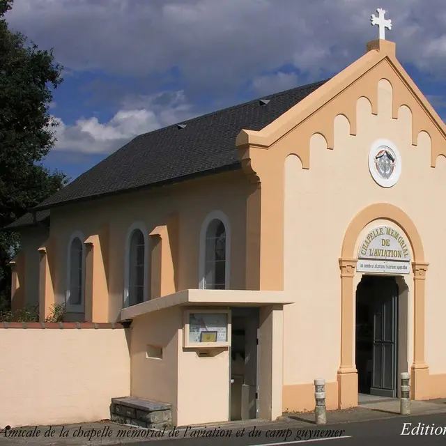 An Aviation Memorial Chapel built in 1927, which is unique in the archives of military aviation. Fully restored. 1 prize of Béarn (BPSO heritage prize) in 2007. The Memorial to the cradle of aviation at Pont-Long (flying school) and to the civilian and military aviators missing in action. Exhibition panels, archives and leaflets. Production of 5 documents 'Aviation in the skies over Pau'.