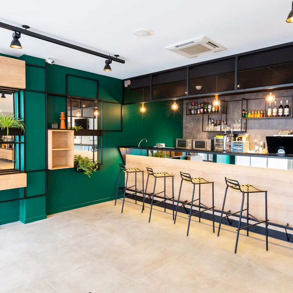 Only 20 minutes from the airport and 5 minutes from the train station, it is close to many restaurants. It has 61 air-conditioned rooms, including 3 rooms for disabled people, a bar serving snacks round the clock and 2 private car parks with a capacity of 18 places maximum, including 1 covered place for €10 per night. Guests can benefit from Wi-Fi internet access in their room and a computer with a printer in the hall. Golf at 5 km, tennis at 7 km.