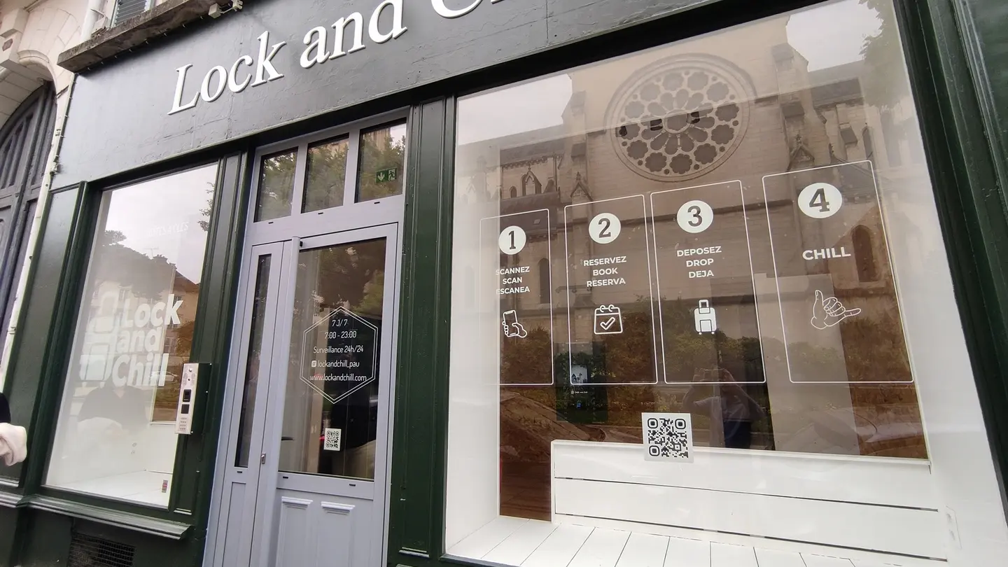 Lock and Chill offers you a modern, 100% autonomous luggage storage solution in the heart of downtown Pau. Thanks to our secure, connected lockers, you can leave your suitcases, bags or personal belongings in complete peace of mind, and enjoy your stay to the full.